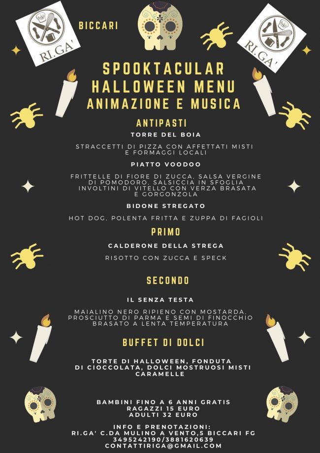 Giovedì 31 Ottobre 2019, alle ore 21:00, Happy Halloween presso il Ristorante Ri.Gà. Per info: Ristorante Ri.Gà Ecco il programma: