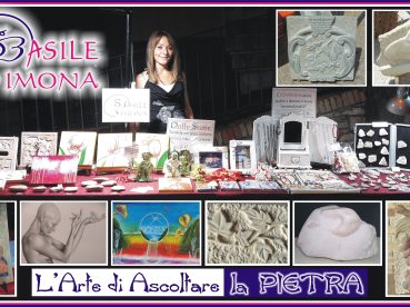Una delle caratteristiche del lavoro di Simona Basile è che non è lei a dare la forma alla materia, ma continua ad osservare il materiale fino a quando non è esso stesso a suggerirle la forma che porta in se. Da un sasso può nascere un coniglio, un cavallo, un ariete, un piede o un fiore a seconda della sua forma e di quello che suscita nella nostra artista. La pietra naturale è il materiale che preferisce utilizzare per dare vita alle sue sculture, in quanto presenta una resistenza fisica tale da rendere ogni sua opera immortale e duratura nel tempo. Inoltre non sono solo sculture quelle che produce Simona, ma anche oggetti di uso comune come portaombrelli, numeri civici, buche per la posta, targhe, insegne, orologi, ciondoli in pietra (per portachiavi, calamite, collane bracciali ed orecchini) e molte altre cose che la fantasia le può suggerire, il tutto rigorosamente lavorato e decorato a mano, pezzi unici, personalizzabili, dalle forme originali.. frutto del suo ingegno.