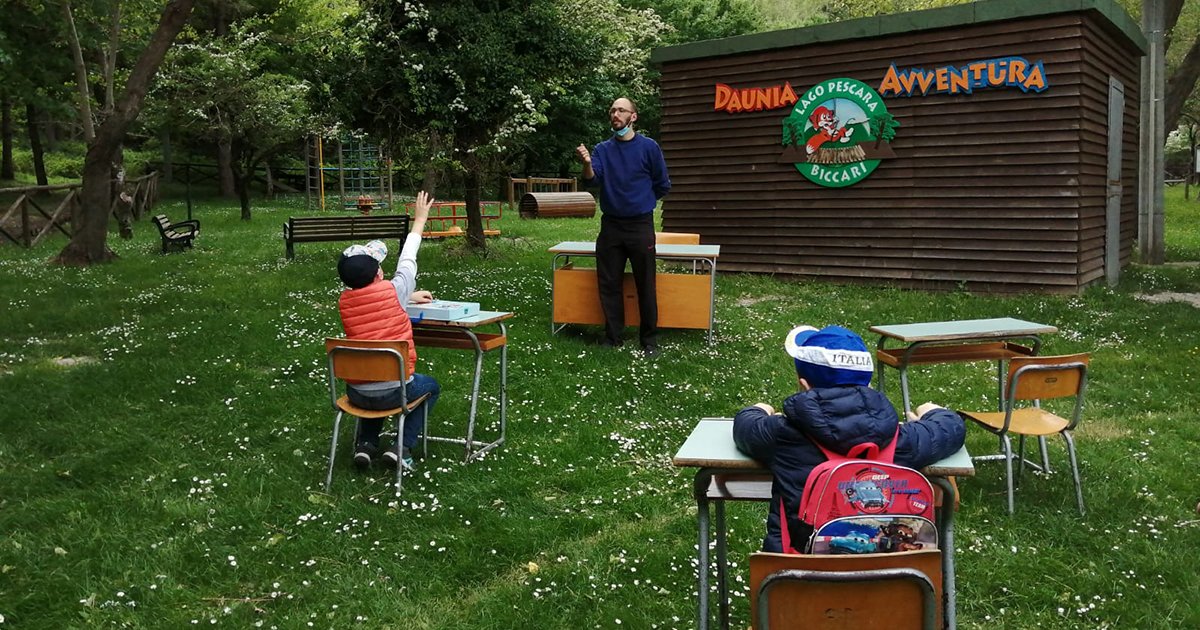 Tra qualche giorno a Biccari, il piccolo comune all’ombra del Monte Cornacchia, i bambini potranno andare a scuola nel bosco. Già proprio così, zaini in spalla e banchi, sedie e lavagna posizionati sui prati del Parco Avventura. E dunque, mentre il Governo studia misure alternative per consentire a tutti gli studenti italiani di poter tornare…