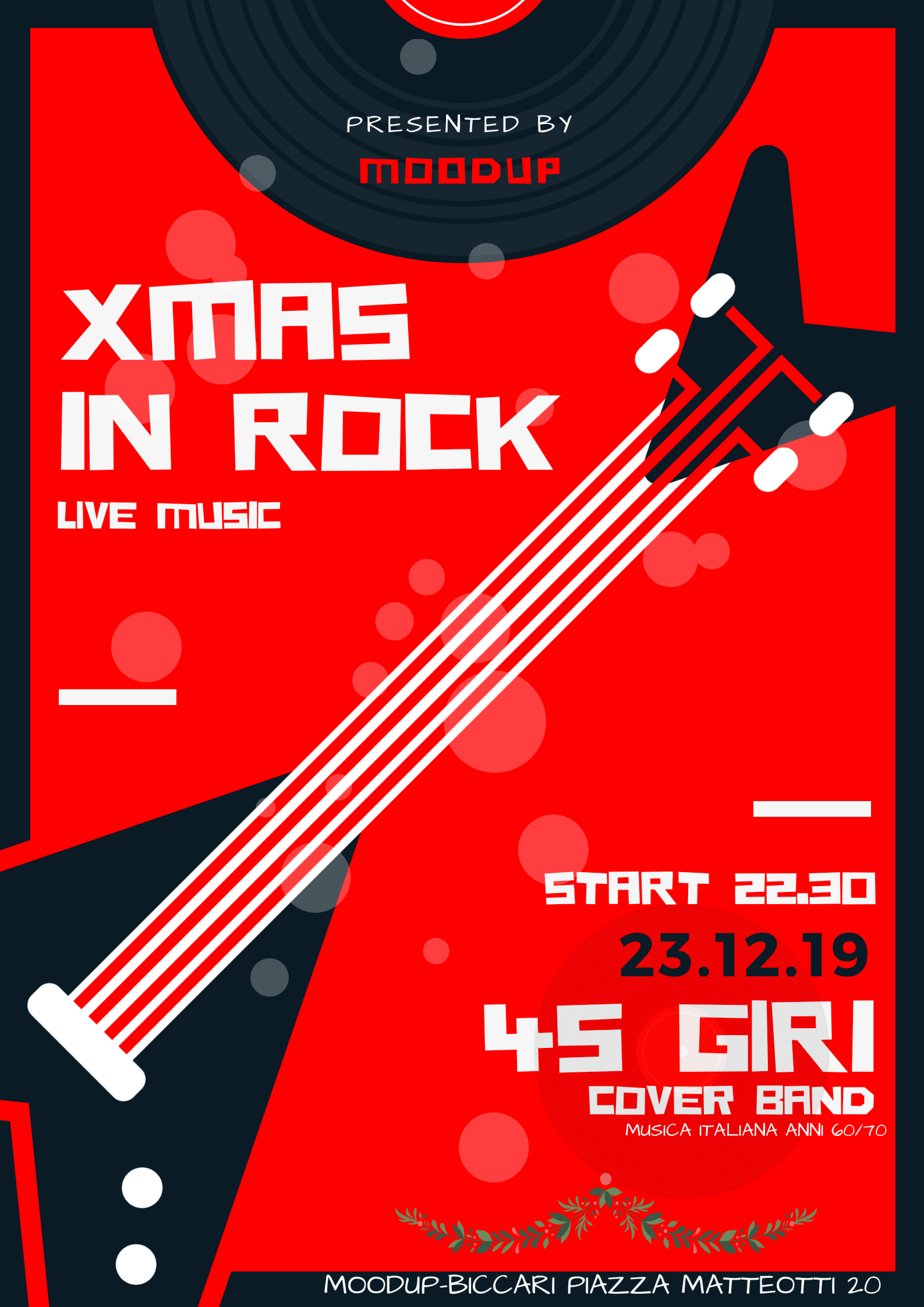 XMAS IN ROCK il Natale Rock del MoodUp! Ospiti della serata la rock band 45 GIRI che ci farà divertire con i più grandi successi italiani degli anni 60/70 rivisitati in chiave rock con alcune esclusive versioni natalizie! Siete pronti a ballare e cantare a squarciagola!?! Quest’anno il Natale al MoodUp è Roooooock! Per…