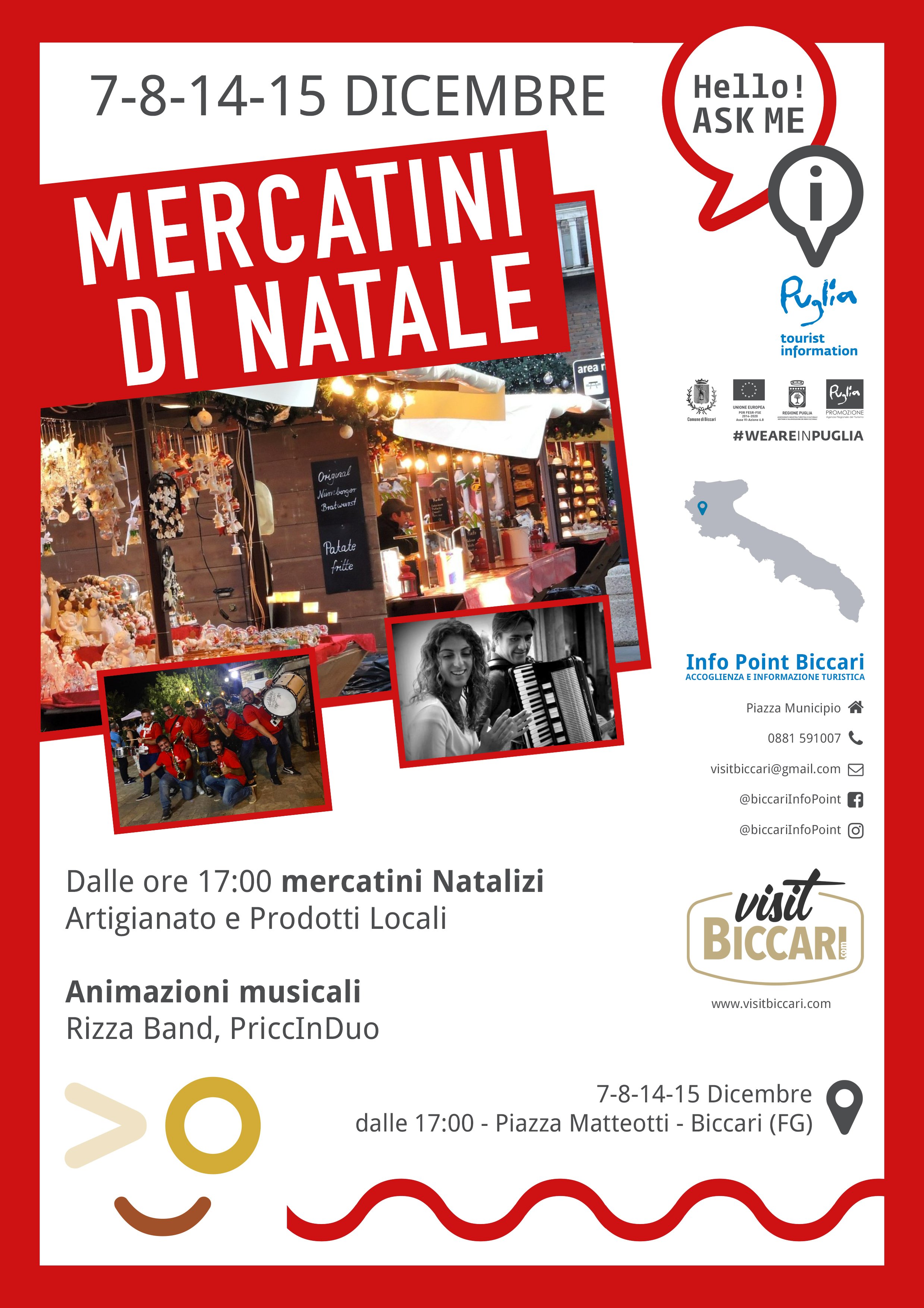 Nei prossimi due weekend, da sabato 7 a domenica 8 Dicembre e da sabato 14 a domenica 15 Dicembre, tornano i mercatini di Natale! Dalle 17:00 saranno in piazza Matteotti mercatini su artigianato e prodotti locali, accompagnati dalla musica di Rizza Band e PriccInDuo.