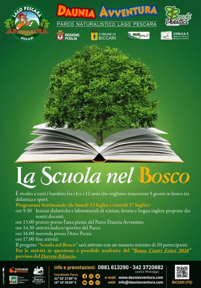 Parte l’attività nel bosco didattico di Daunia Avventura. La scuola che hai sempre sognato. Una scuola dove ambiente, agricoltura e alimentazione saranno al centro di un progetto formativo speciale per una vacanza attiva e rigenerante‼️ Da oggi partono le iscrizioni su www.dauniaavventura.com. Per le famiglie sarà possibile utilizzare il Bonus Centri Estivi del Decreto Rilancio. Per…