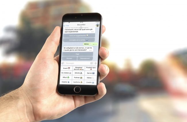 BiccariBot è il bot di Biccari. I bot non sono altro che utenti artificiali con cui messaggiare e sono programmati per interagire nelle chat con altri utenti. Messaggiando con BiccariBot potrai interrogarlo su: attività ed eventi a Biccari attrazioni turistiche servizi ristoranti e B&B raccolta porta a porta mensa scolastica mezzi di trasporto meteo tradizioni…
